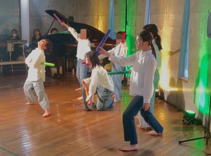 また、プログラム全てに照明さんが素敵に色を付けて演出してくださっていたのですが、研究科の時に私が「変えて!」の合図で生徒さんが即時反応で動きを変える活動があり、その時に照明の色も「ぱっ!」「ぱっ!」と変化してくださっていました。凄いですね。